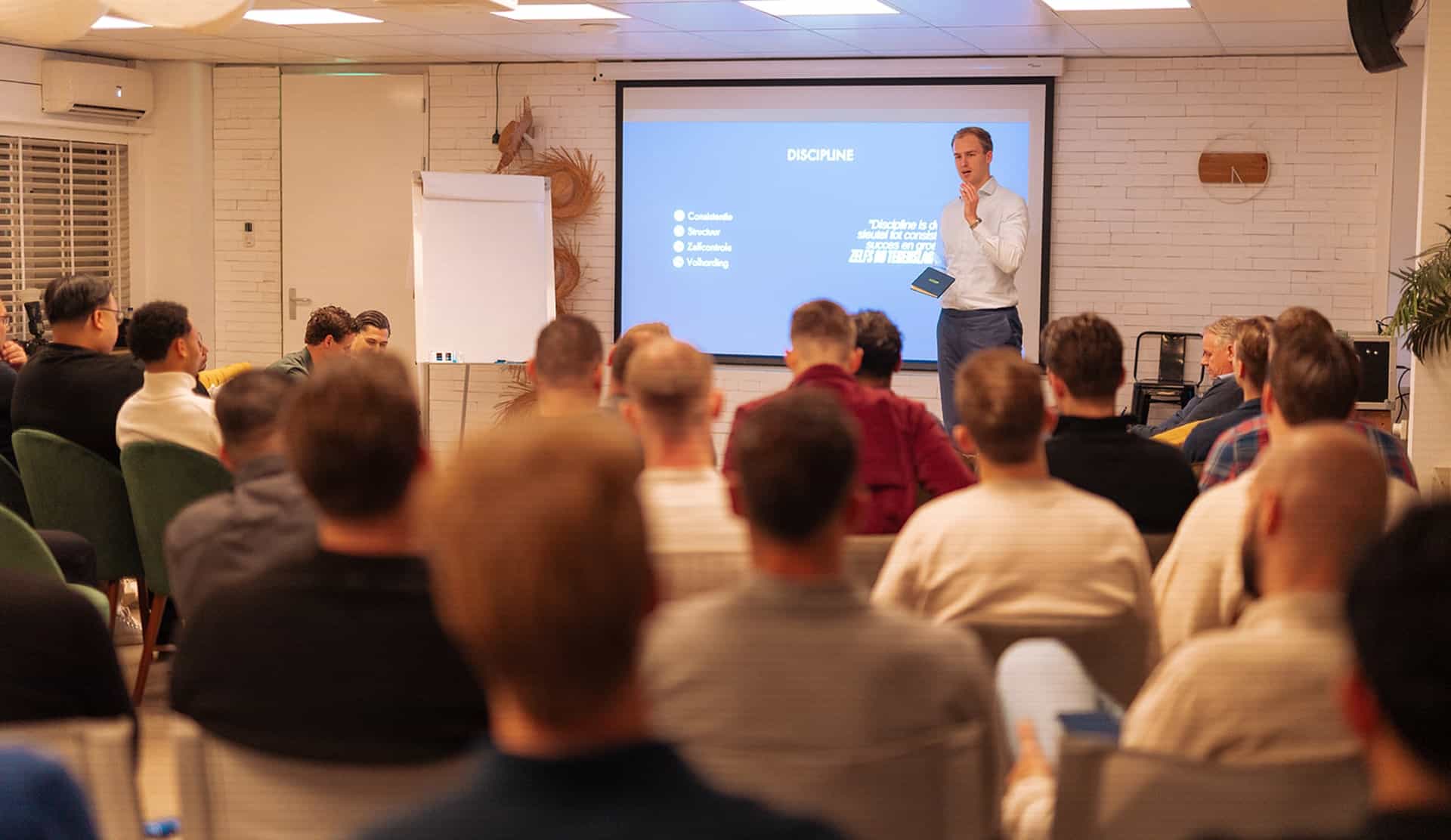 Je start zonder echt geld op een demo-account, leert eerst backtesten en gaat pas verder wanneer je consistent resultaat laat zien. Daarna bouw je gecontroleerd op met kleine bedragen, onder begeleiding. Bij grotere bedragen ligt de focus sterk op psychologie en mindset, zodat resultaten ook op de lange termijn houdbaar blijven.